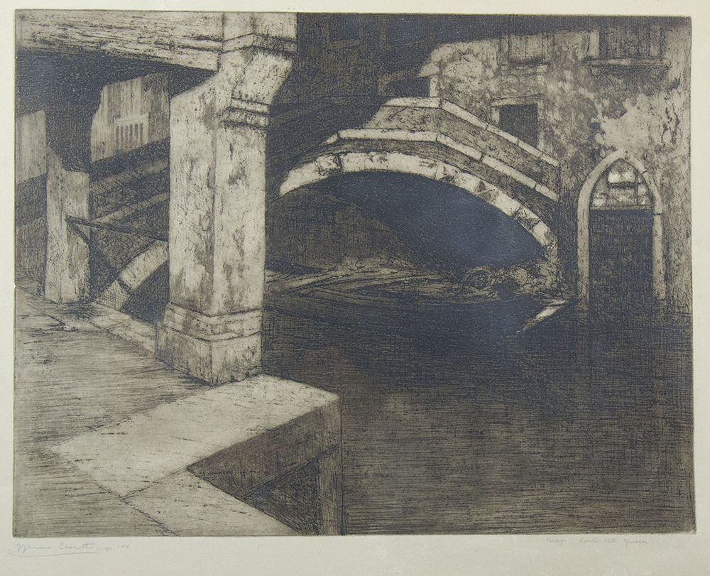 Bruno Croatto Trieste 1875-Roma 1948 "Venezia, Ponte della Guerra" cm. 50x58 - incisione Firmato b. a s. Op. 104. Pubbl.: catalogo "Bruno Croatto" a cura Fondazione CRTrieste pag. 236 n. 38.