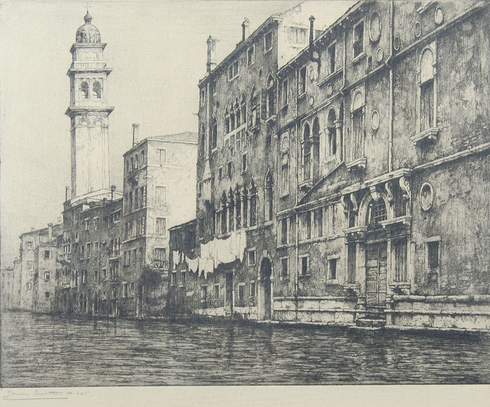 Bruno Croatto Trieste 1875-Roma 1948 "Venezia, canale cm. 43x48 - incisione Firmato b. a s. Op. 265.