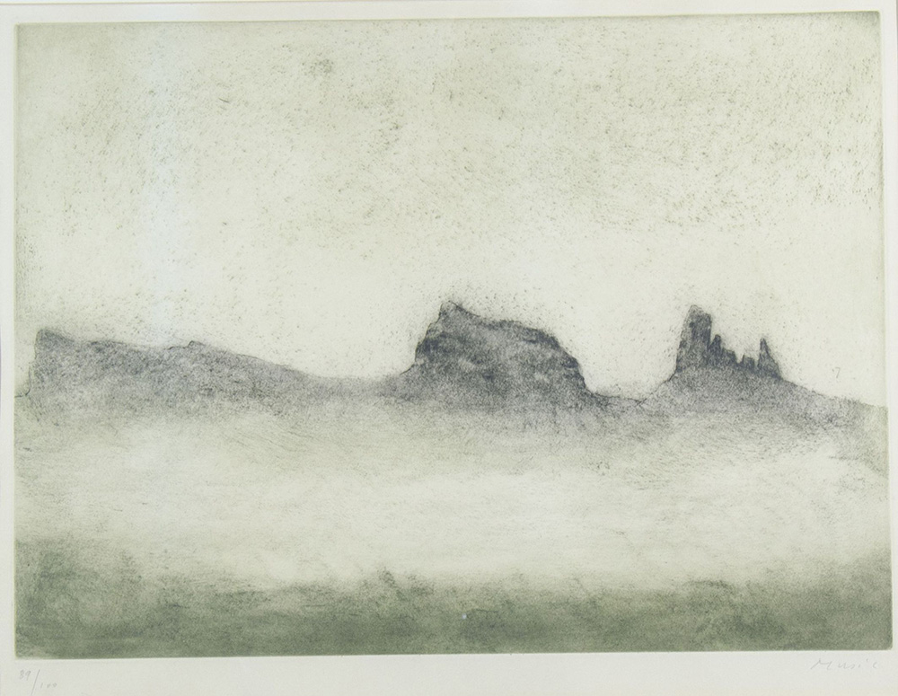 Anton Zoran Music Gorizia 1909-2005 "Paesaggio" cm. 56x68 - incisione con timbro Graphic International Firmato b. a d. Esemplare 89/100.