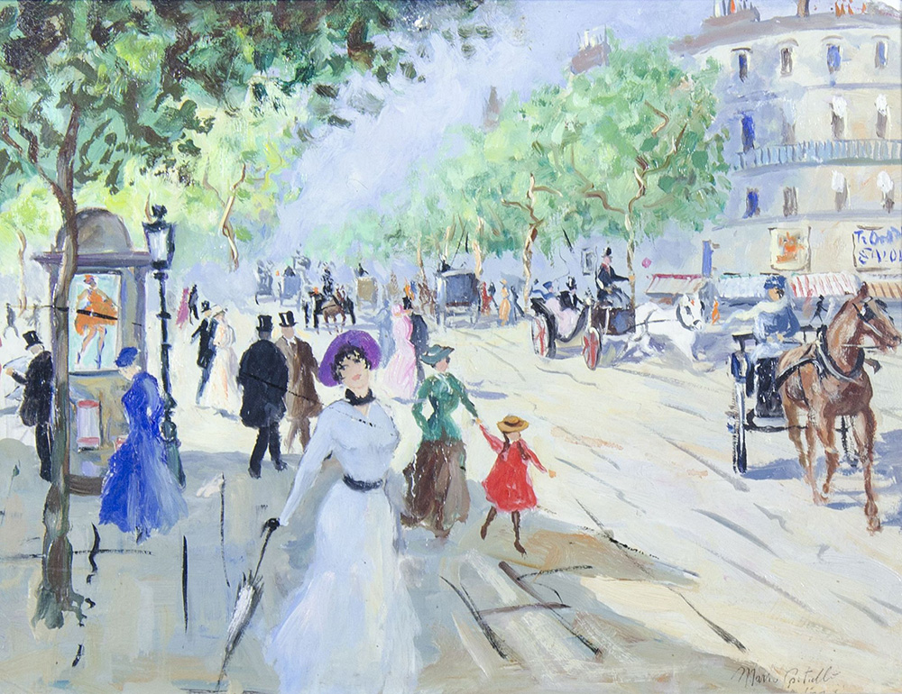 Mario Cortiello 1907-1981 "Boulevard" cm. 23x30 - olio su cartone Firmato b. a d.