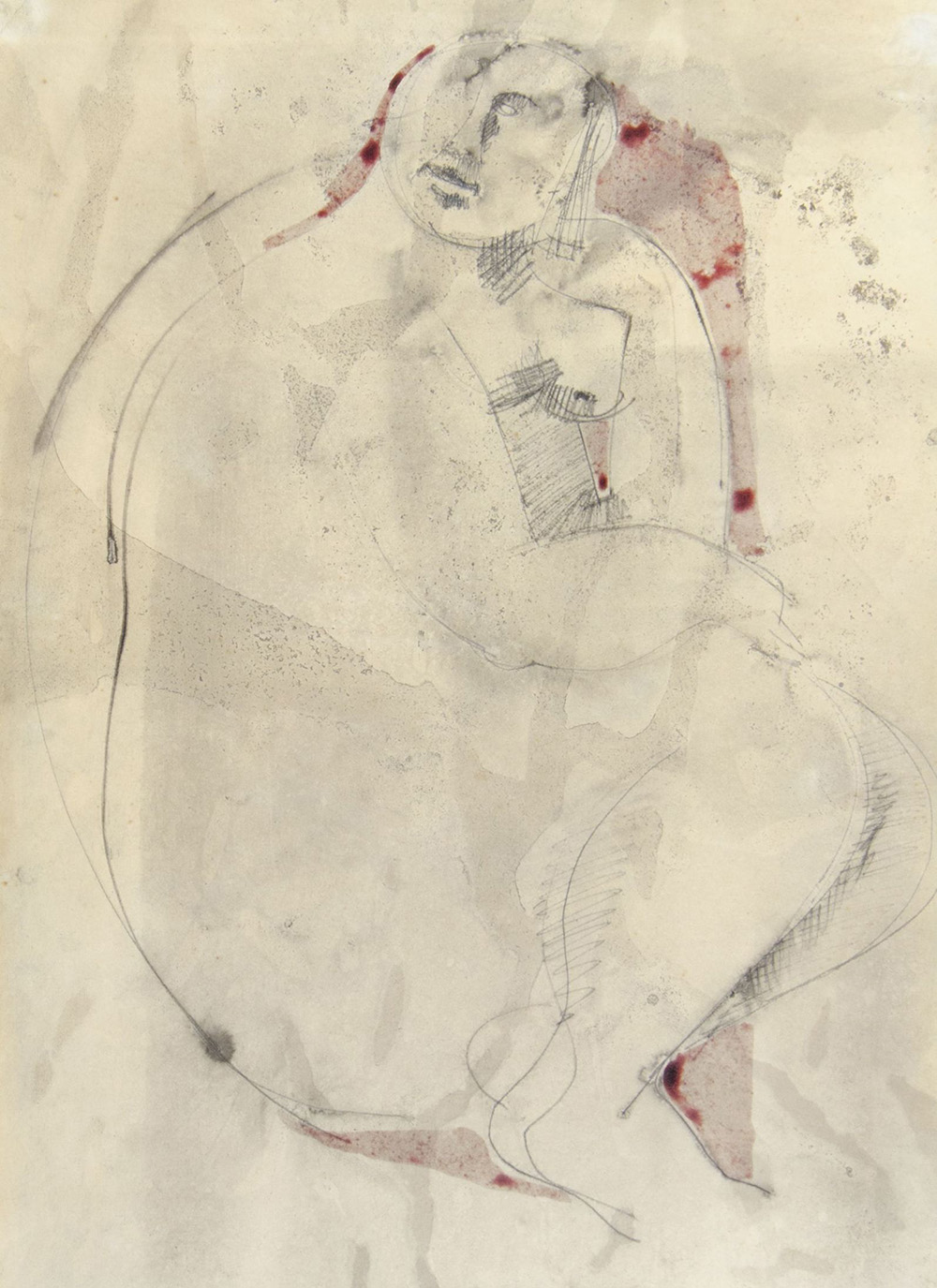 Oreste Dequel Capodistria 1923-Roma 1985 "Figura" cm. 48x36 - tecnica mista