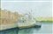 Roberto D'Ambrosio Salerno 1947 "Barca attraccata" cm. 20x30 - olio su tela Firmato b. a d. e al retro.
