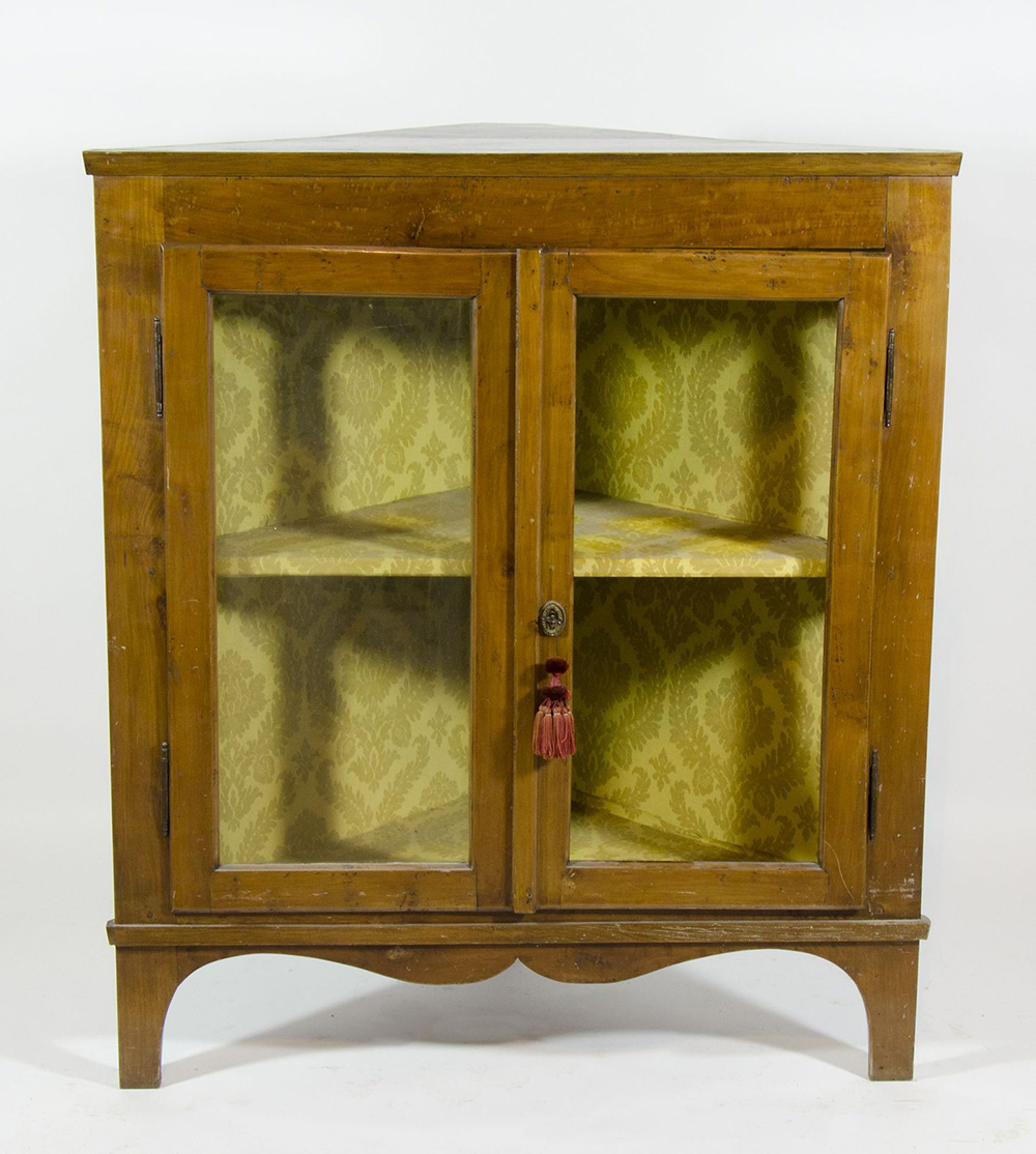 Angoliera da terra in legno con 2 ante a vetri. cm. 110x70x70.