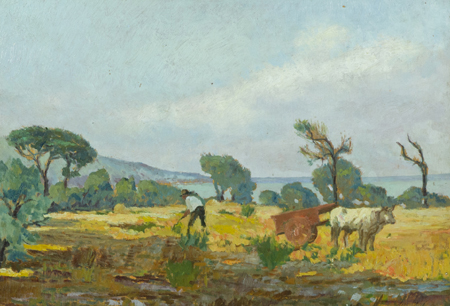 Giovanni Malesci Firenze 1884 - Milano 1969 Antignano, 1928 Olio su tavola, cm. 34x49 Firmato in basso a destra. Sul verso: firma, data e titolo.