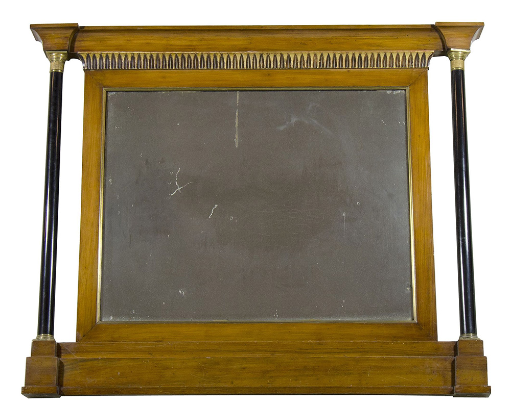 Specchiera in legno di noce con colonne in legno scuro. Epoca Impero. cm. 100x124.