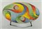 Tavolino basso di forma ovale con piano lavorato a mosaico. Sotto la base...