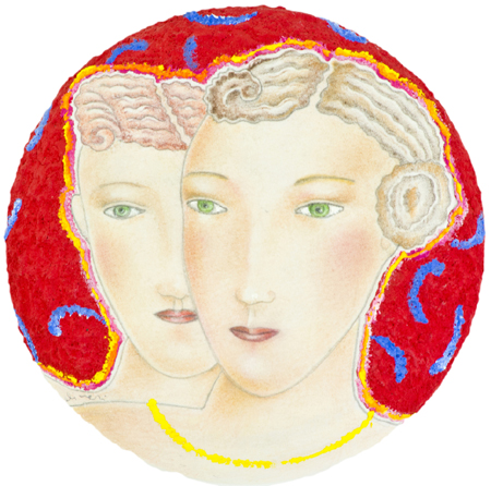 Luca Alinari Firenze 1943 Figure Tecnica mista su tela applicata su tavola, diametro cm. 20 Firmato in basso a sinistra.