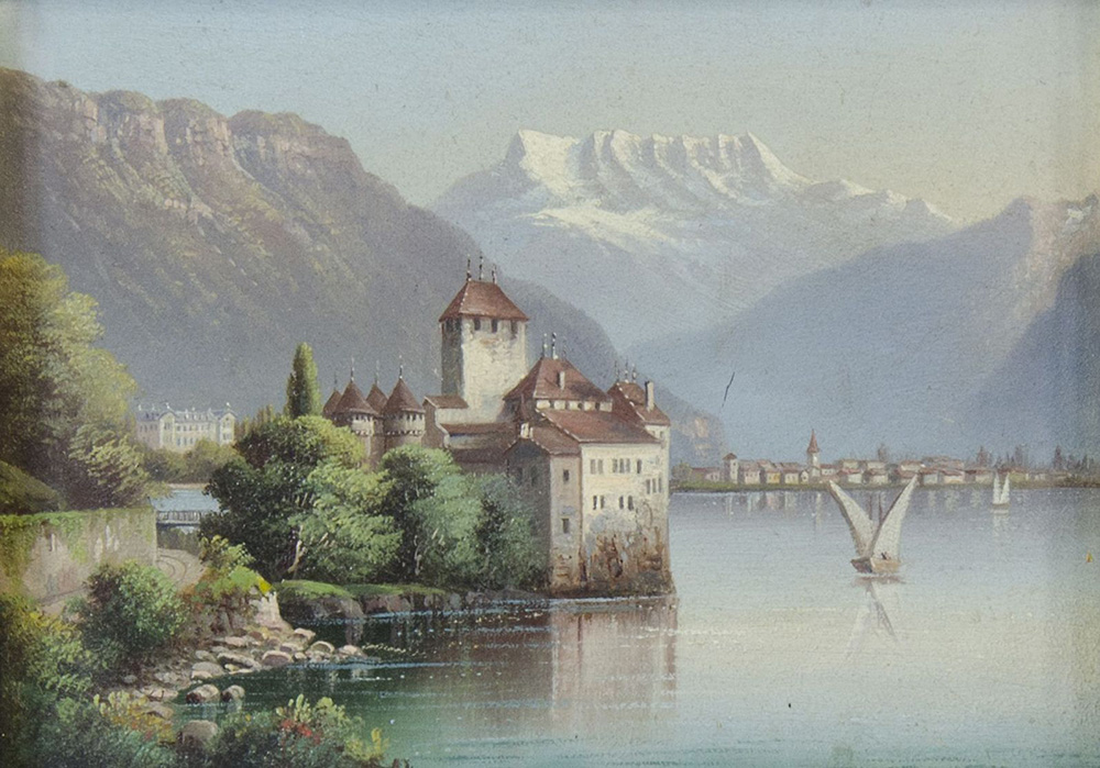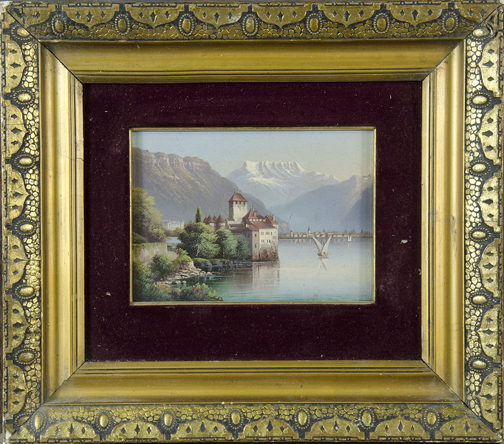 Pittore del XIX secolo "Laghetto tra i monti" cm. 13x18 - olio su tavoletta