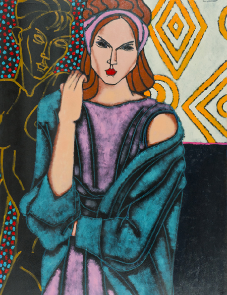 Lisandro Ramacciotti Viareggio 1950 Il ritratto di Eva Mogens Olio su tela, cm. 101,5x78,5 Firmato in alto a destra. Sul verso: firma, titolo e scritto di Autenticità dell'Artista.