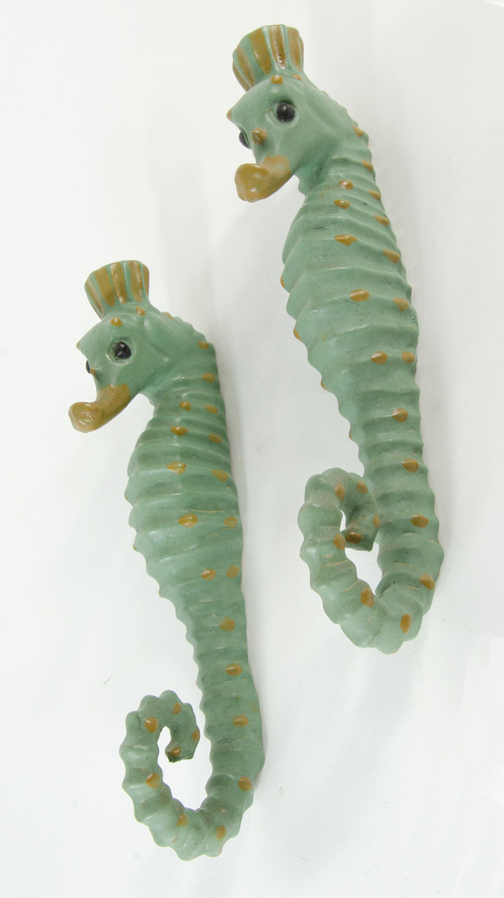 Matteo Di Lieto Coppia di appliques in ceramica verde a forma di cavallucci marini. Firmati al retro. H. cm. 39.