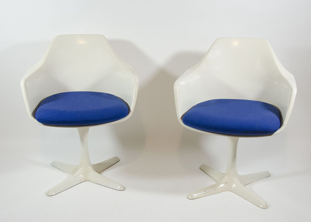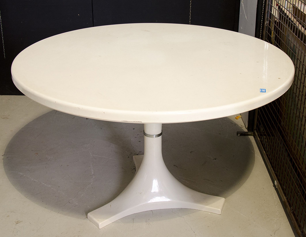 Set composto da tavolo rotondo bianco e 4 poltrone a pozzetto marcate Arkana.