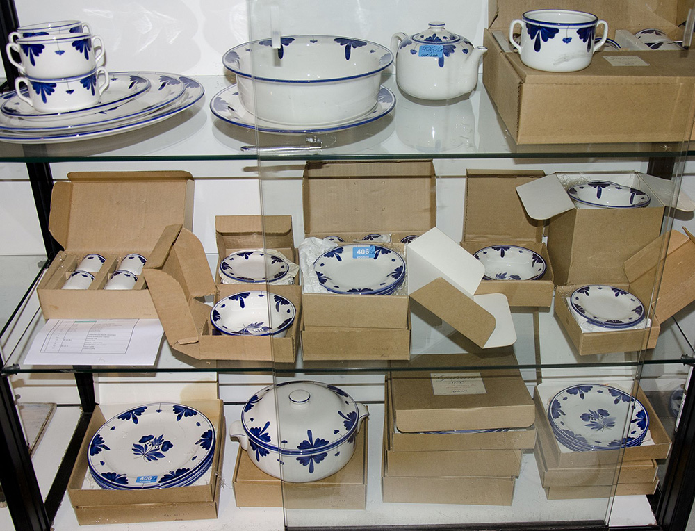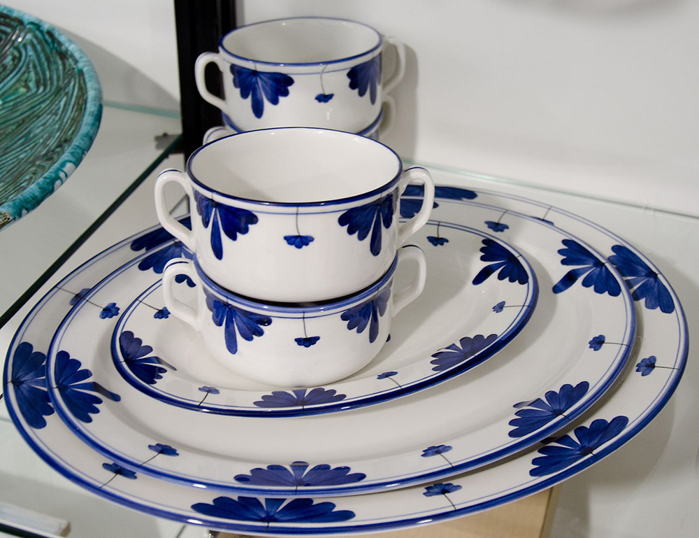 Lotto 406 | Galvani: servizio di piatti per 12 persone in ceramica con decori azzurri.