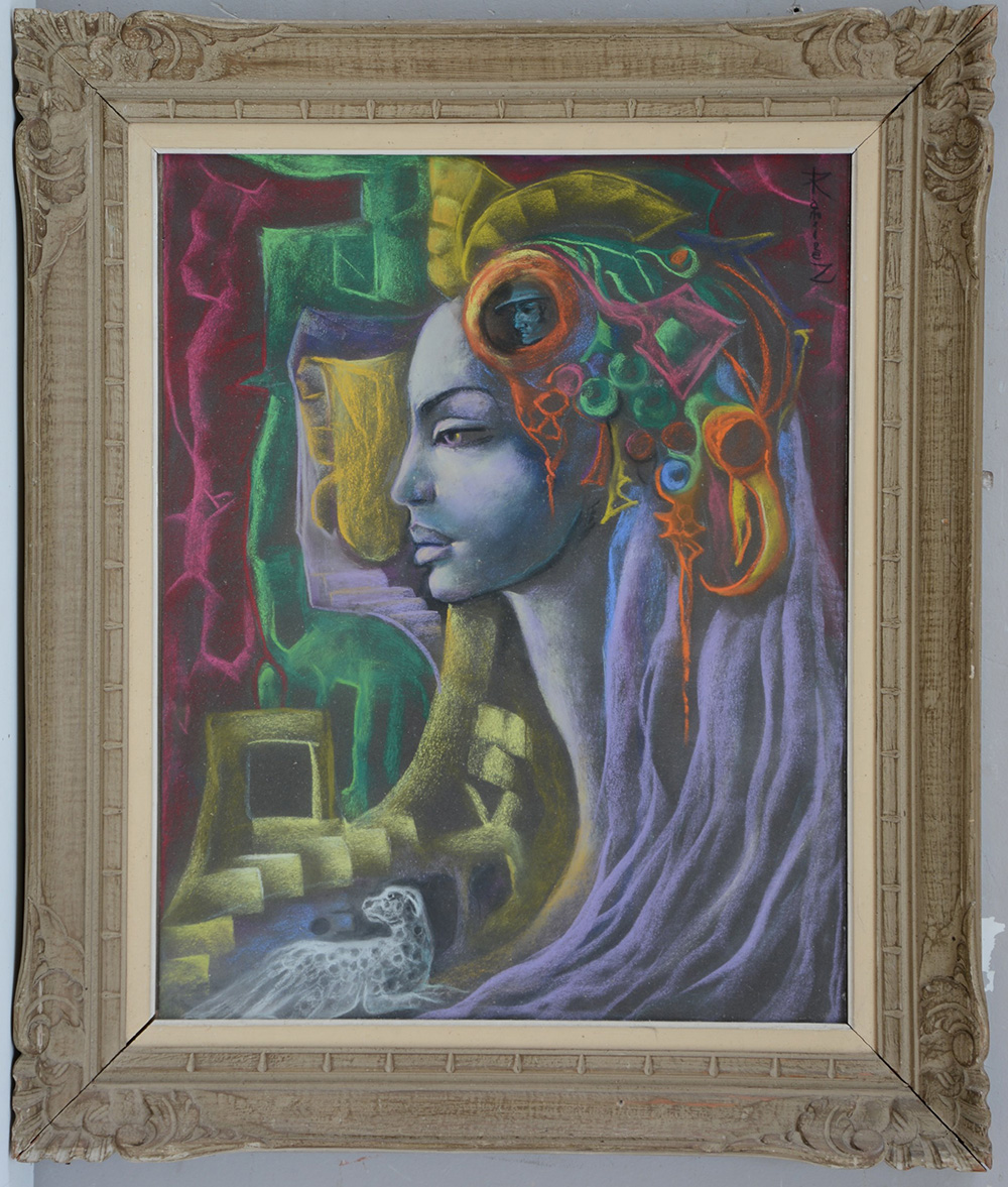 Ignoto "Volto" tecnica mista su cartoncino (cm 63x50) reca firma Ramirez in...