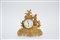 Pendola da tavolo in metallo dorato decorato a roccailles e figura di...