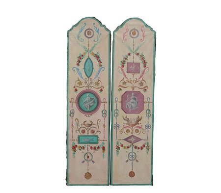 Ignoto coppia di pannelli sagomati decorati a motivi neoclassici ad olio su tela (cm 160x40) (difetti)
