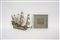 Lotto composto da un modello di veliero in metallo e una placca in metallo...