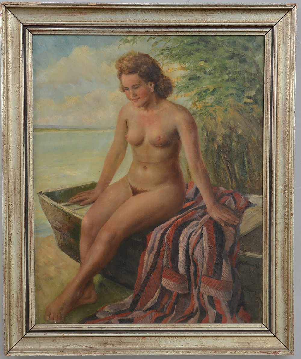 Ignoto sec XX. "Nudo di donna" olio su tela (cm 100x80) reca firma indecifrata in basso a destra, in cornice (difetti)