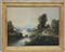 Ignoto "Paesaggio lacustre con viandanti e ponticello" olio su tela (cm 49x65) in cornice (difetti)