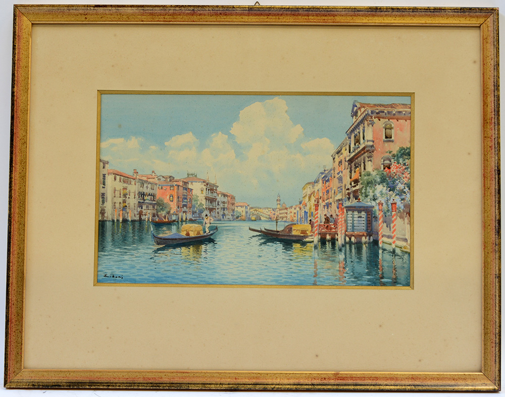Emilio Boni ( 1844- 1867)"Scorcio diurno di Canal Grande a Venezia" acquerello su carta. Firmato in basso a sinistra (cm 28x44) In cornice