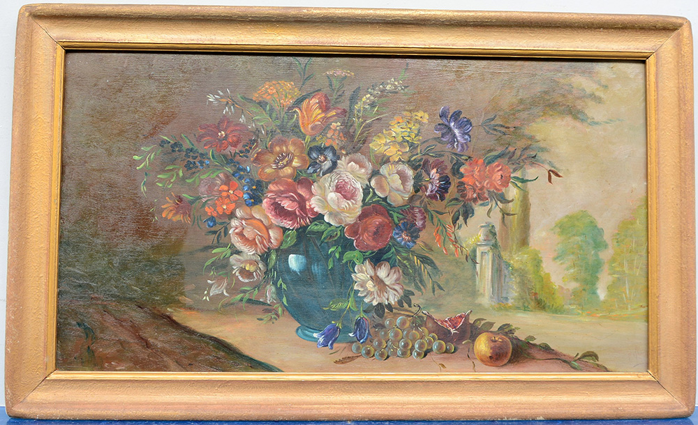 Ignoto "Vaso con fiori" olio su compensato (cm 54x99) in cornice