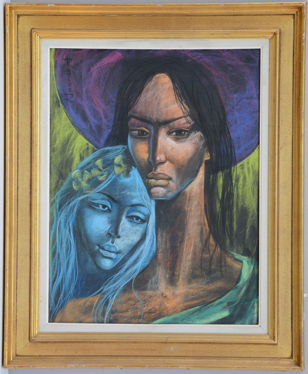 Lotto 201 | Ignoto "Volti" tecnica mista cartoncino (cm 66x50) reca firma Ramirez in alto...