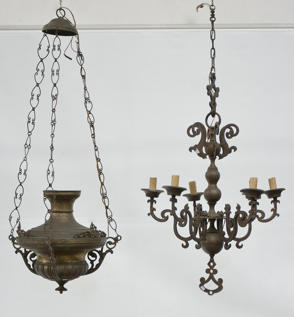 Lotto composto da un lampadario olandese del sec XIX ed un ostensorio pensile