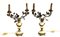 Coppia di candelieri a due fiamme in alabastro e bronzo a forma di vaso con...