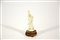 Piccola scultura in porcellana Blanc-de-Chine raffigurante Guanyin su base con fiore di loto, Cina, sec. XX (h. 10 cm.), con base in legno (difetti)