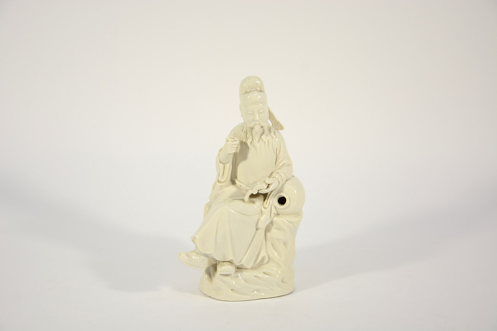 Letterato in porcellana Blanc-de-Chine, con certificazione, Cina (h. 25 cm.) (rotture)