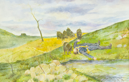 Giovanni Fattori (Attribuito) Bozzetto del dipinto Pro Patria Mori Acquerello su carta, cm. 17,5x27 Firmato in basso a destra.