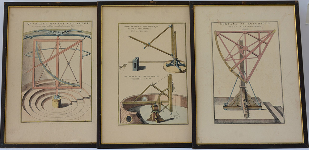 Lotto composto da cinque incisioni (410x285 mm) colorate all'epoca, raffiguranti sfere armillari. Sec. XVIII. In cornici senza vetro