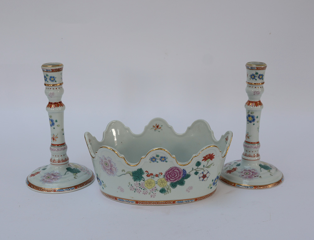 Lotto composto da un centrotavola e due candelieri in porcellana