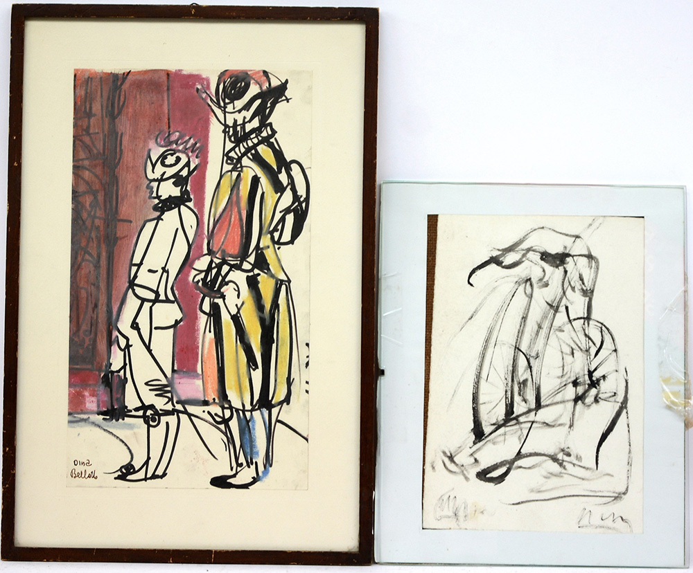 Lotto di due composizioni di autori e dimensioni differenti, in cornici (difetti)