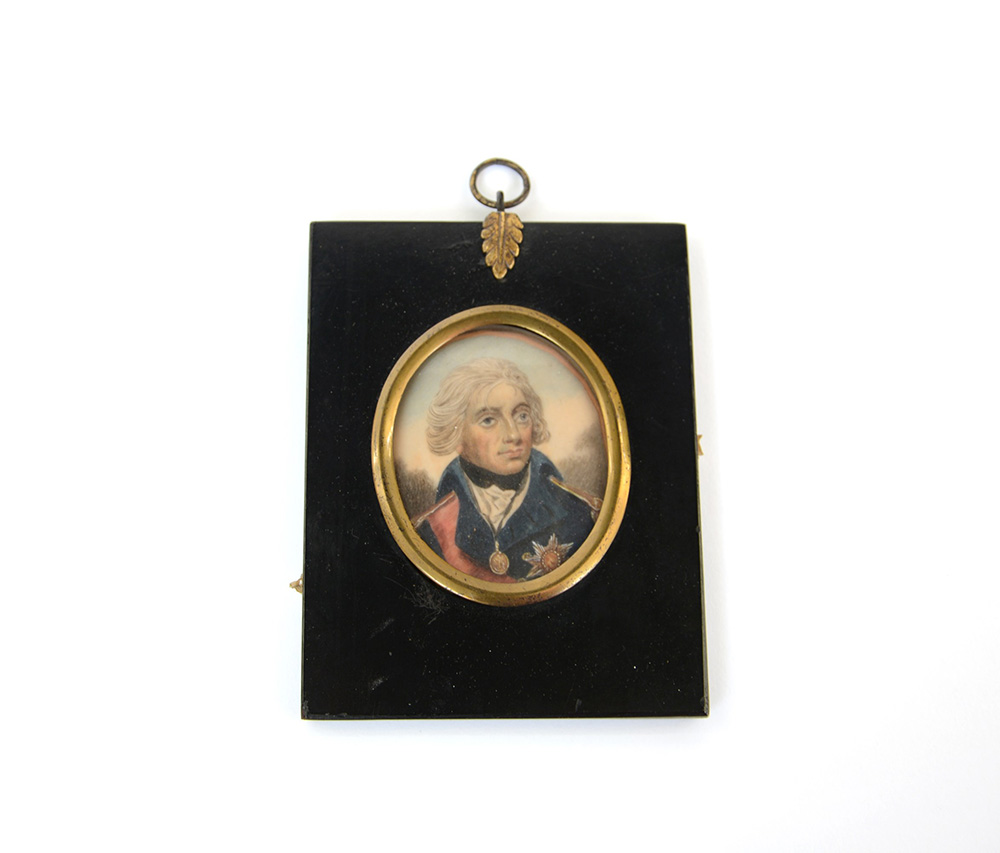Scuola dell'inizio del sec. XX "Ritratto di Lord Nelson" miniatura ovale su avorio (cm 7x5,5) In cornice (difetti)