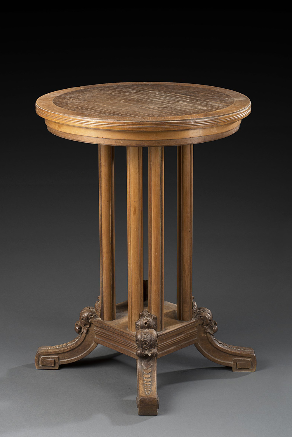 Tavolino circolare in legno sostenuto da otto gambe tornite, piedi intagliati. Italia, prima metà sec XX (h cm 77,5, diametro 58) (lievi difetti)