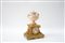 Pendola con cassa in metallo dorato sormontata da un vaso biansato in porcellana