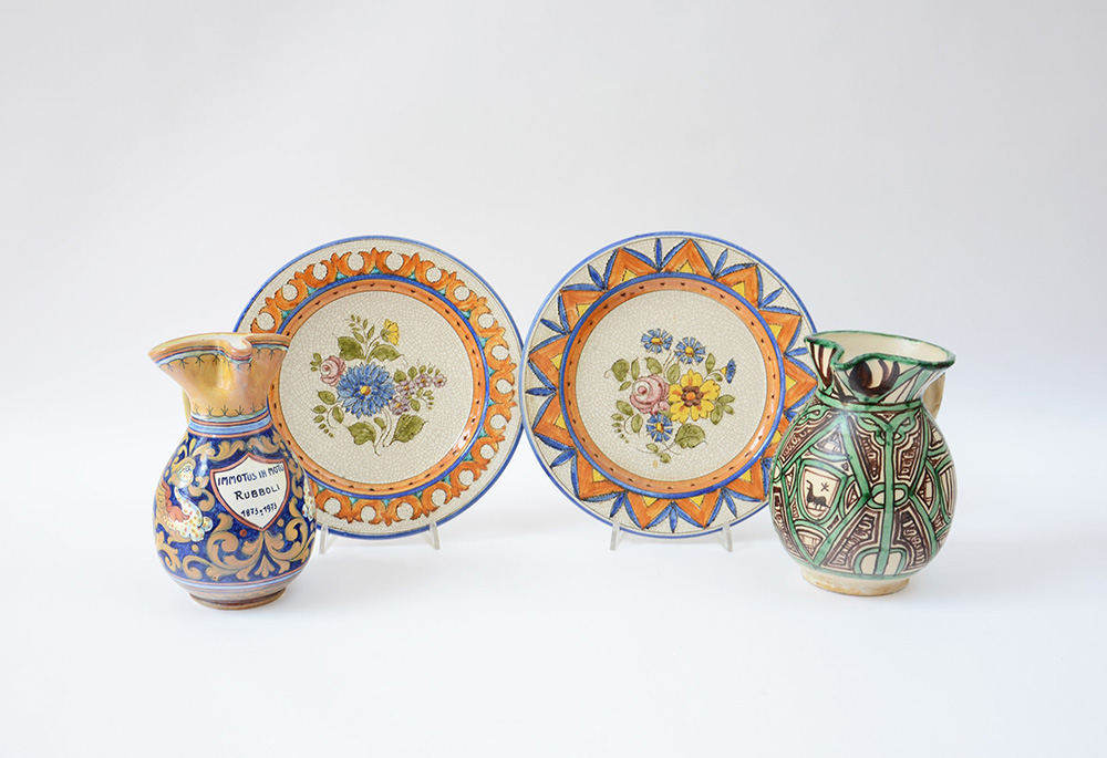 Manifattura del centro Italia, lotto composto da due versatoi e due piatti in...