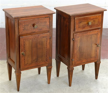 Coppia di comodini ad un'anta e un cassetto con piani filettati (cm 41x75x30)