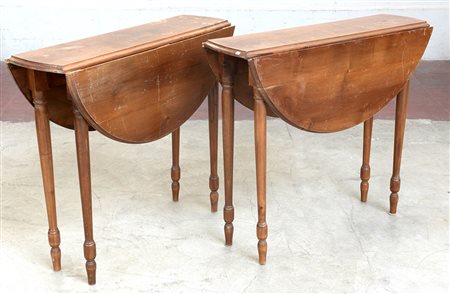 Coppia di tavolini ad alette con gamba tornita (cm 89x80x30)