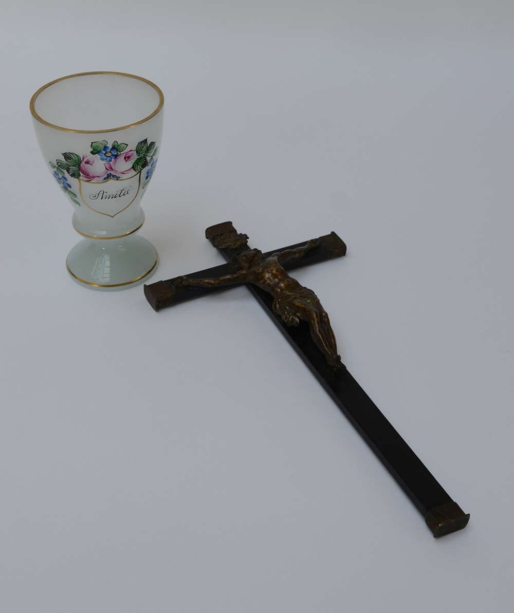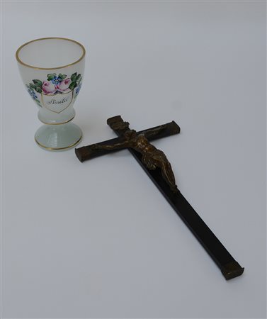 Lotto composto da un antico crocefisso ed un bicchiere in vetro