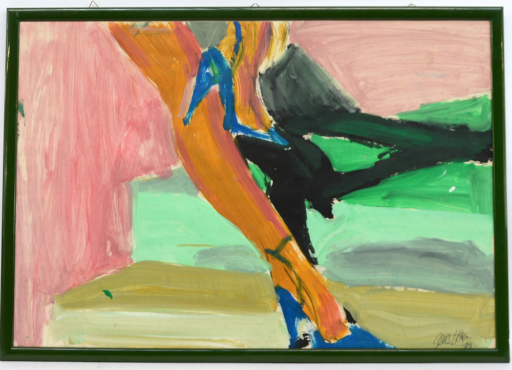 Firma indecifrata, "Composizione", tempera su carta (cm 54x79) firmato e datato in basso a destra, in cornice (difetti)