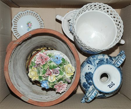 Manifatture diverse. Lotto composto da dieci oggetti diversi in terracotta, ceramica e porcellana (difetti)