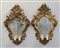 Coppia di ventole a due fiamme in legno intagliato e dorato a volute e foglie d'acanto (cm 95x60) (difetti e mancanze)