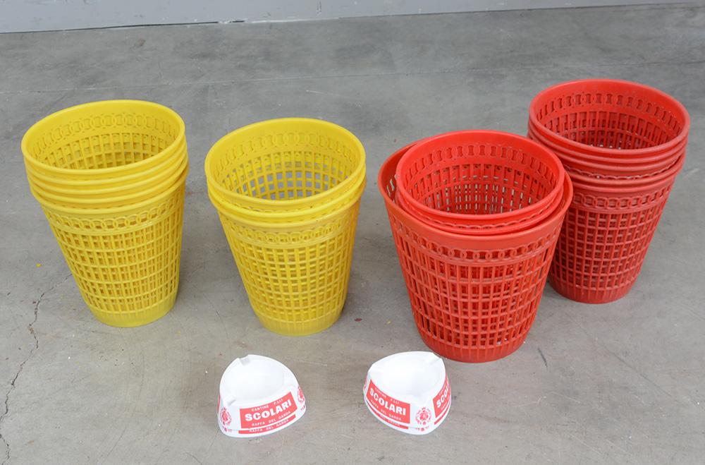 Lotto 807 | Cartone contenente numerosi cestini gettacarte in plastica e alcuni...