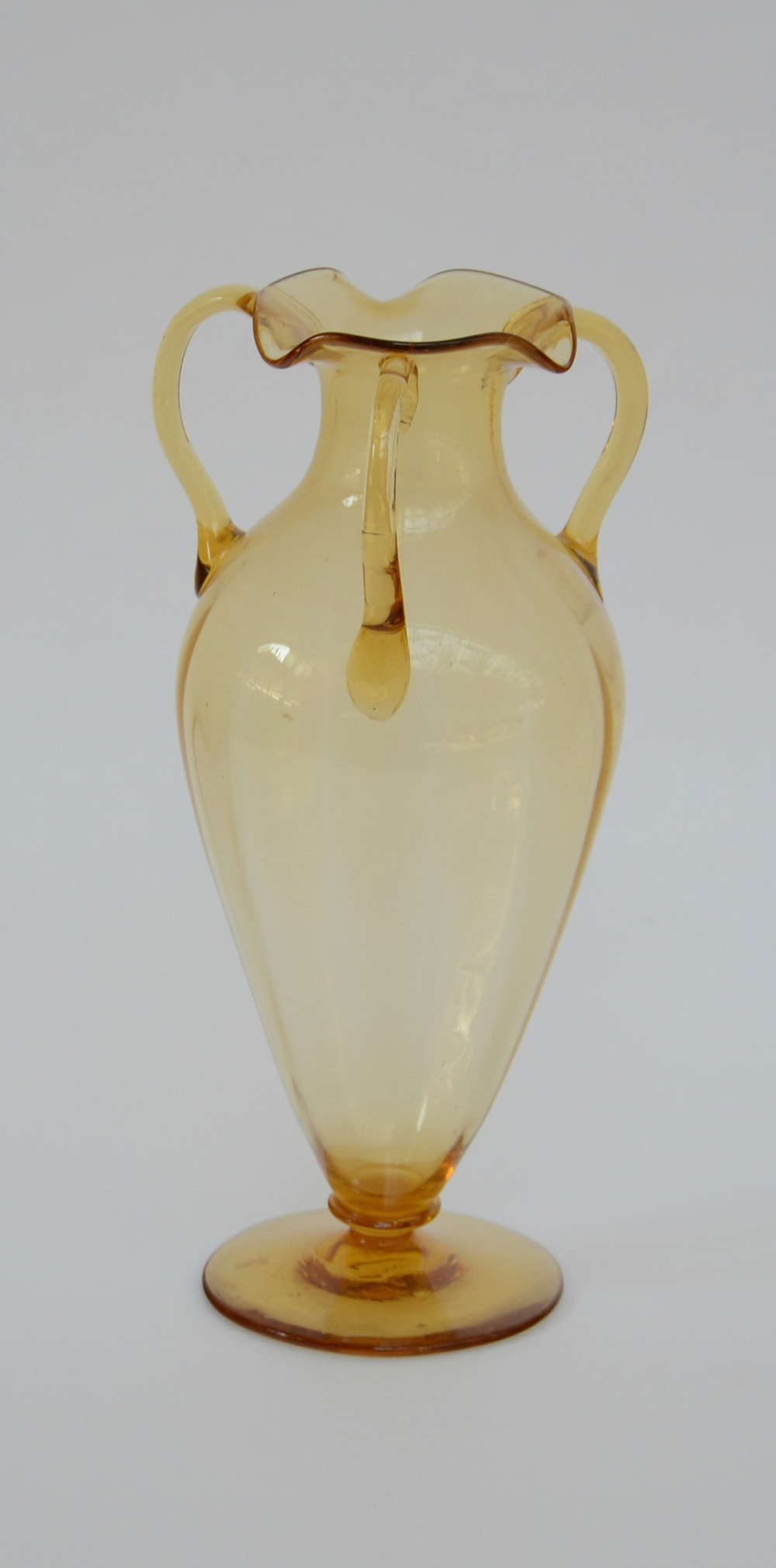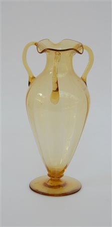 Manifattura di Murano. Vaso biansato a forma di anfora in vetro paglierino (h cm 28)