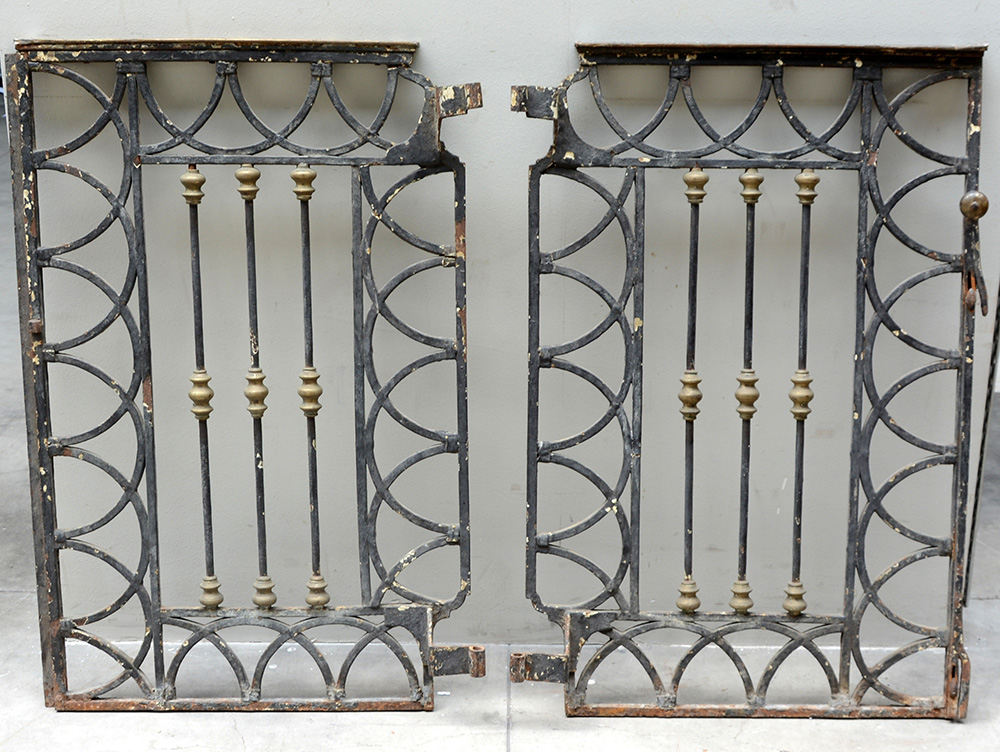 Cancellino a due battenti in ferro battuto con decori geometrici ed elementi...