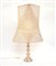 Candeliere in argento con corpo tornito montato a luce elettrica (h cm 46), paralume in tessuto con ricamo in pizzo(lievi difetti)