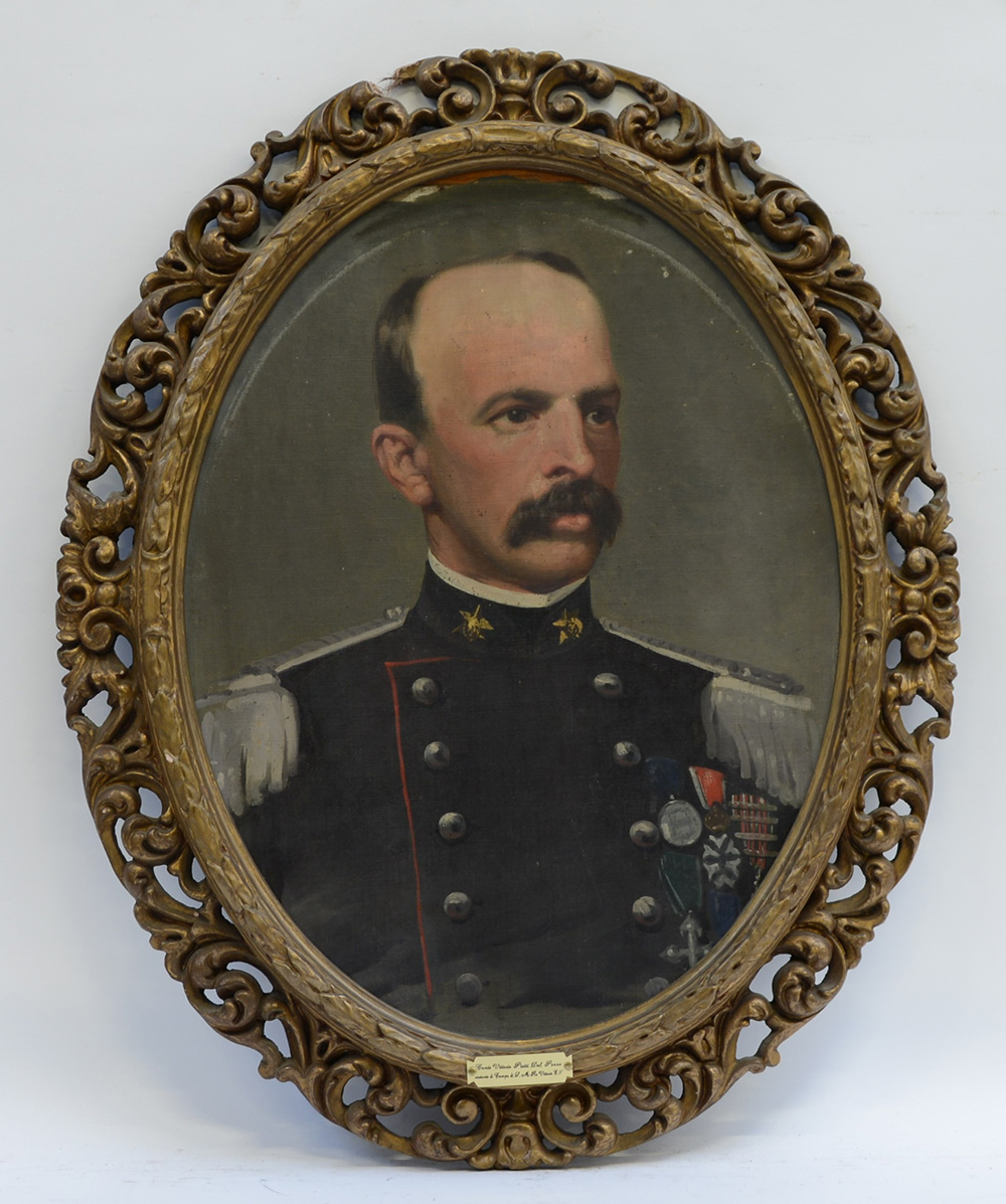 Ignoto "Ritratto del Conte Vittorio Piatti Dal Pozzo in uniforme" olio su tela ovale (cm 63x47) in cornice (difetti)