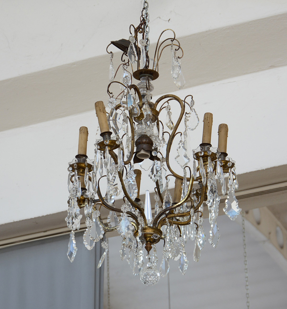 Lotto 864 | Lampadario a nove luci con struttura in metallo e pendagli in vetro (d cm 55)