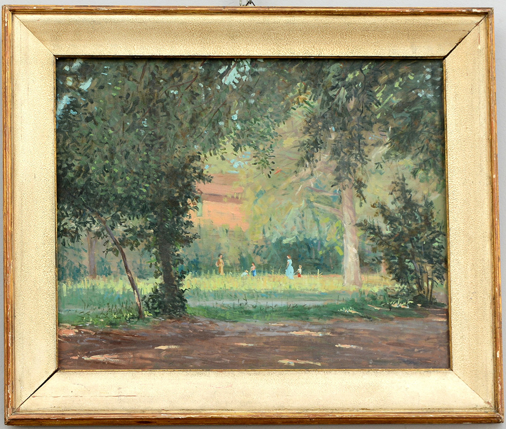 Lotto 867 | Ignoto "Giardino di Villa fabbricotti, Livorno" 1953 olio su tavoletta (cm...